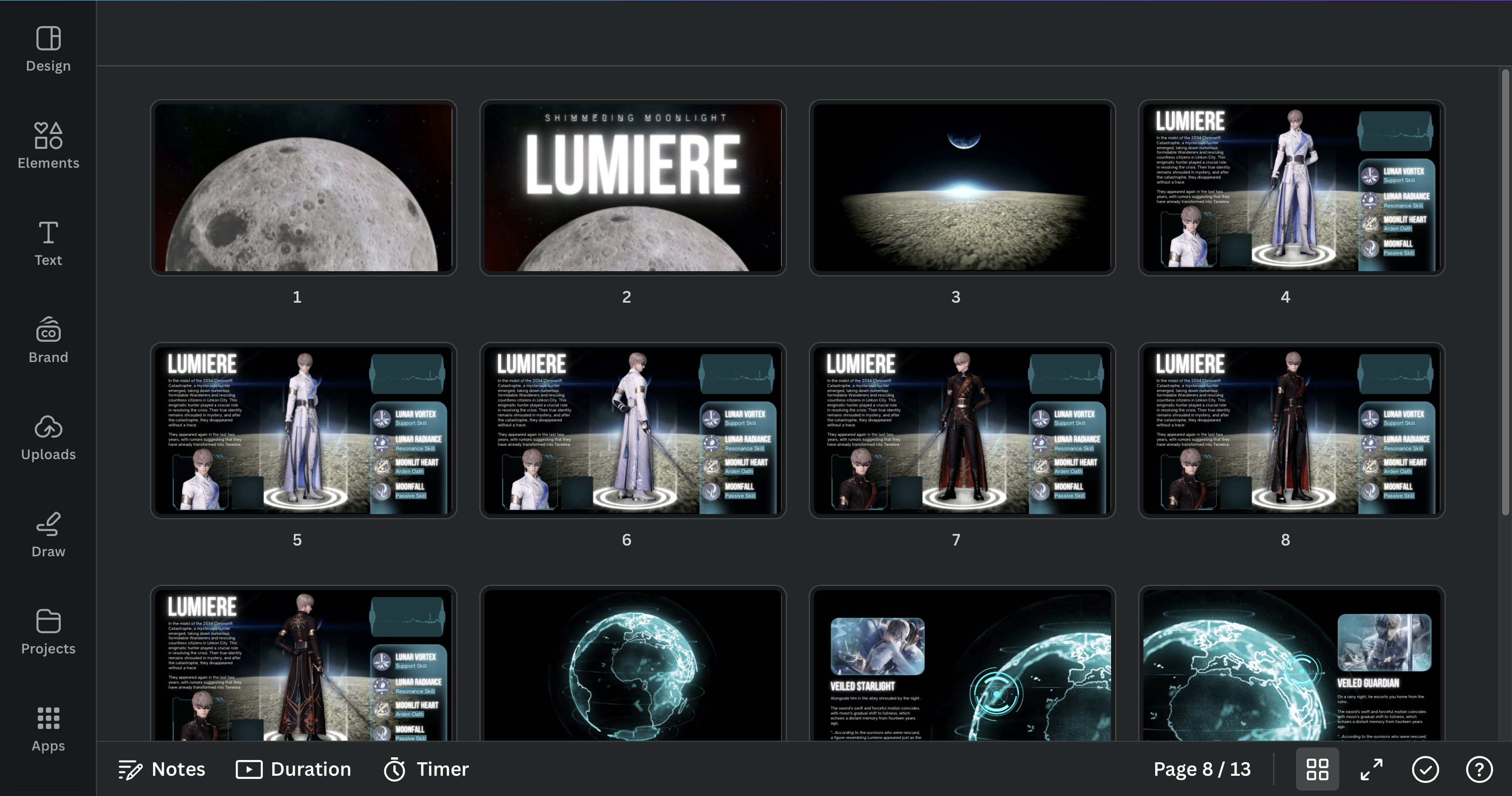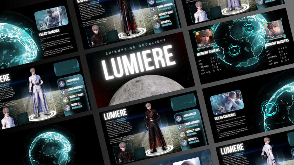 Canva presentation templates inspired by Xavier, Lumiere from Love and Deepspace. Inspired by Xavier Lumiere's visionary creations, these templates bring the futuristic vibe of cyberpunk to life in your presentations.